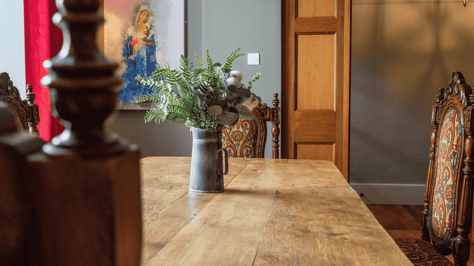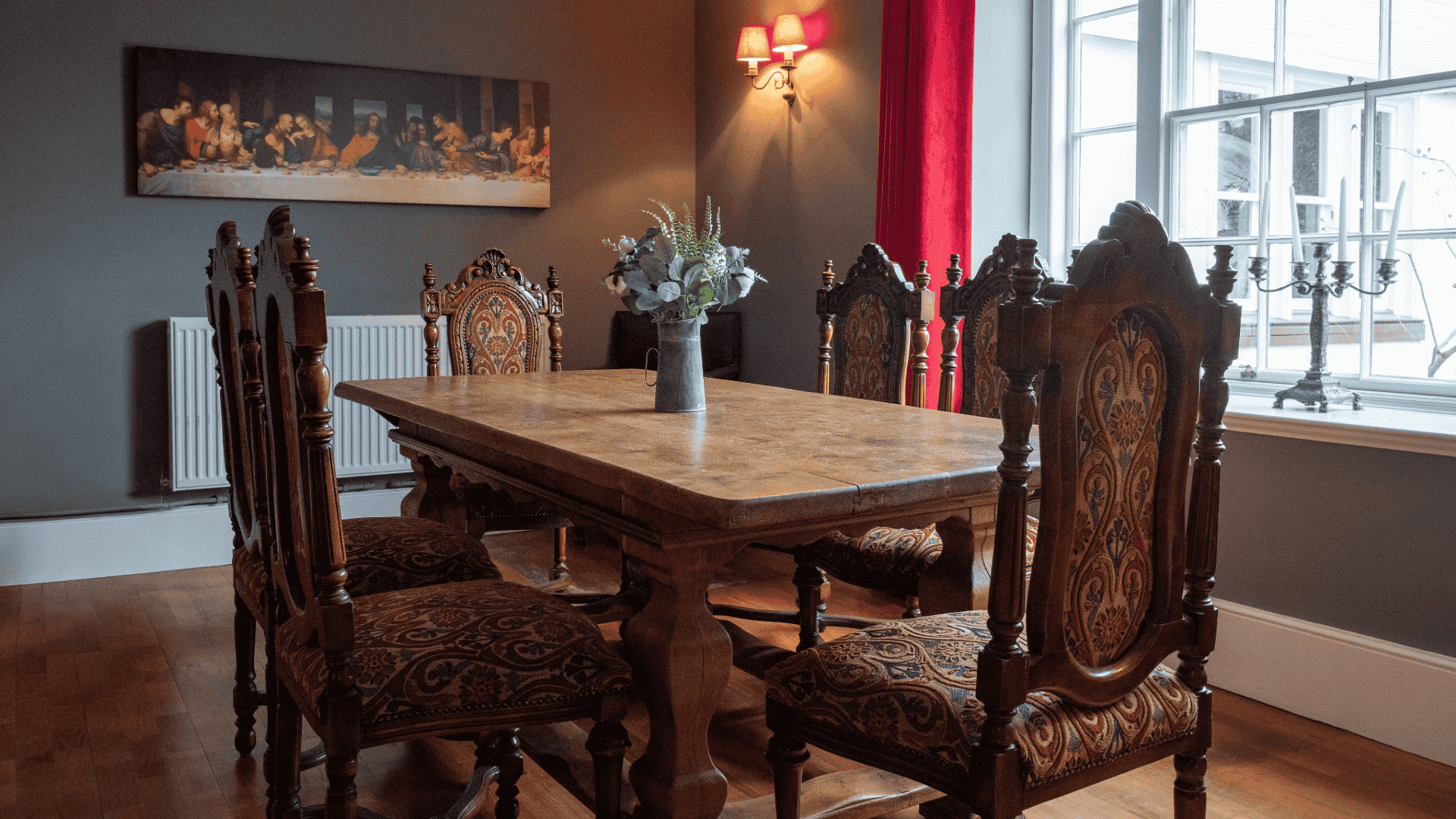 Manor House is a Grade II* listed building — a late 16th-century manor house in the village of Hunton, set in the Kent countryside. It's a genuinely beautiful place, and we've worked carefully to restore and adapt it so it feels exactly as it should: like a real home, not a care facility. Inside, you'll find calm, comfortable spaces with the kind of character you can't manufacture. Original features sit alongside everything your loved one needs to feel settled, safe and at ease.